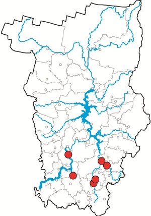 Лазурник трехлопастной распространен в Малой Азии, Иране, на Кавказе, в Средней и Атлантической Европе, на Урале [3, 4]. В Пермском крае вид встречается в южных районах, на сегодняшний день известен из Кишертского, Кунгурского, Осинского, Оханского, Ординского и Уинского районов [5, 6].