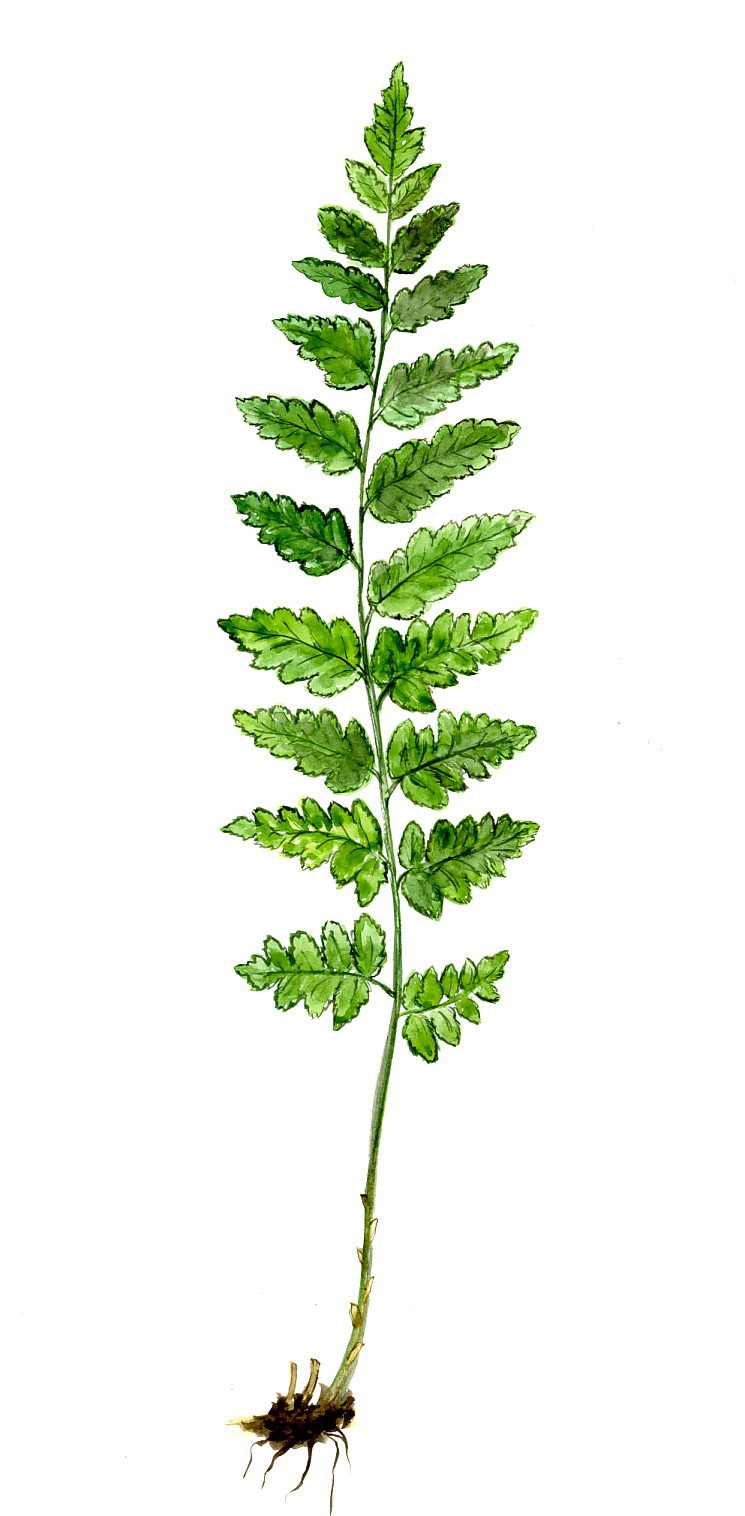 Крупных размеров папоротник с коротким, толстым корневищем и розеткой вай, густо покрытых светло-бурыми чешуйками и волосками. Пластинки вай дважды перисто-рассеченные, темно-зеленые, блестящие. Сорусы развиваются в верхней половине пластинок вай генеративных особей [2, 3].