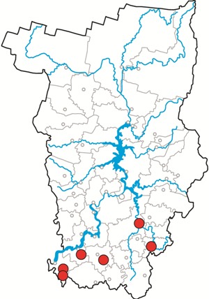 В Пермском крае впервые поганка бледная обнаружена в 1997 г. в Чайковском районе (с. Буренка) [3]. Впоследствии отмечено появление плодовых тел поганки бледной, иногда массово, в следующих 5 районах: Чайковский (окр. д. Уральское), Бардымский (ООПТ «Сарашевские дубравы»), Еловский (окр. с. Куштомак), Кунгурский (ООПТ «Спасская и Подкаменная горы»), Суксунский (урочище Низкое) [4]. За все время наблюдений было обнаружено 227 плодовых тел поганки бледной, наибольшее количество – на ООПТ «Спасская и Подкаменная горы».