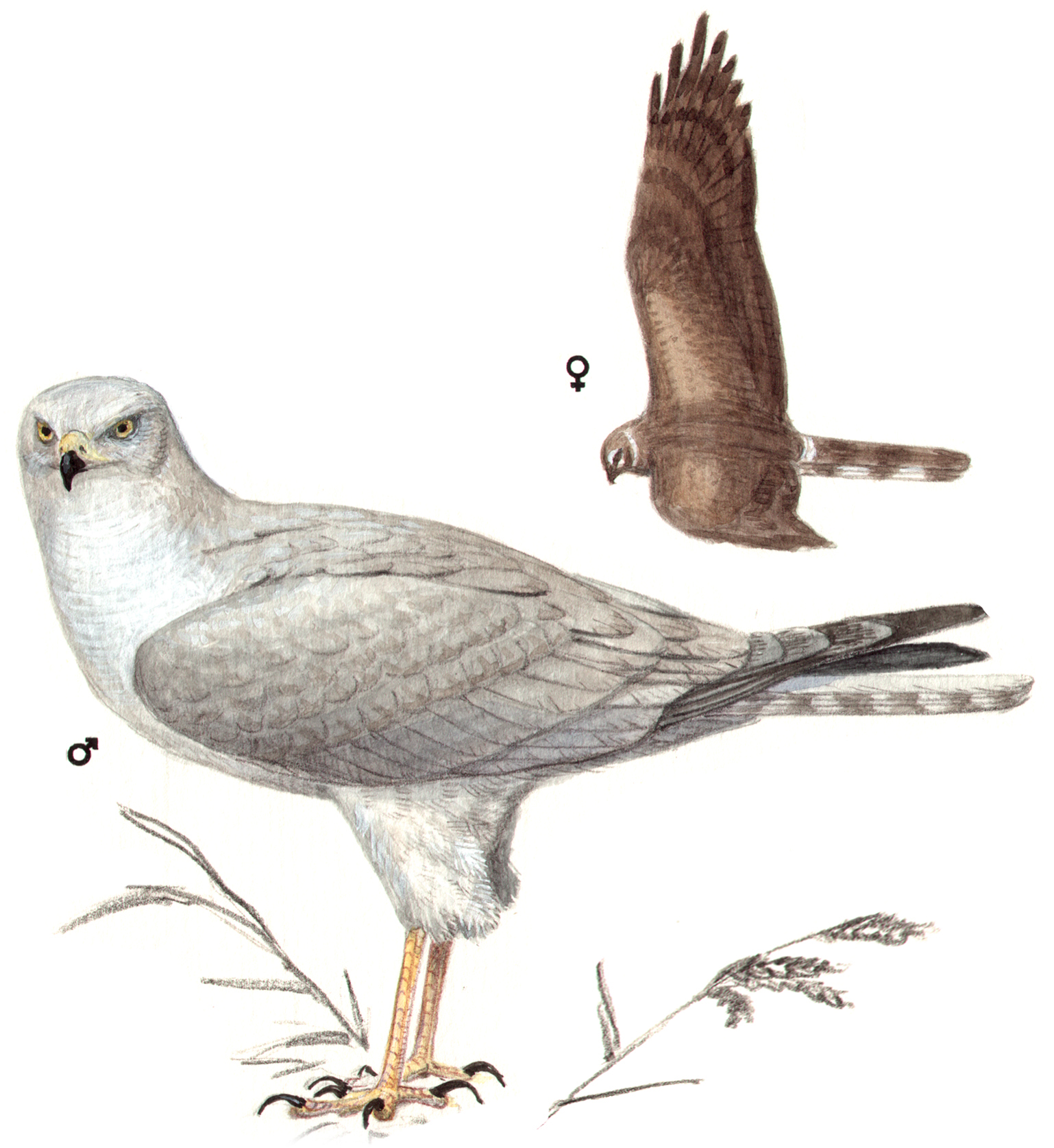Самый светлый из светлых луней (полевой, луговой, степной). У самца кончики крыльев черные, однако тоже светлее, чем у других луней. Самки и молодые птицы имеют бурую окраску. Длина тела составляет около 50 см, размах крыльев до 120 см.