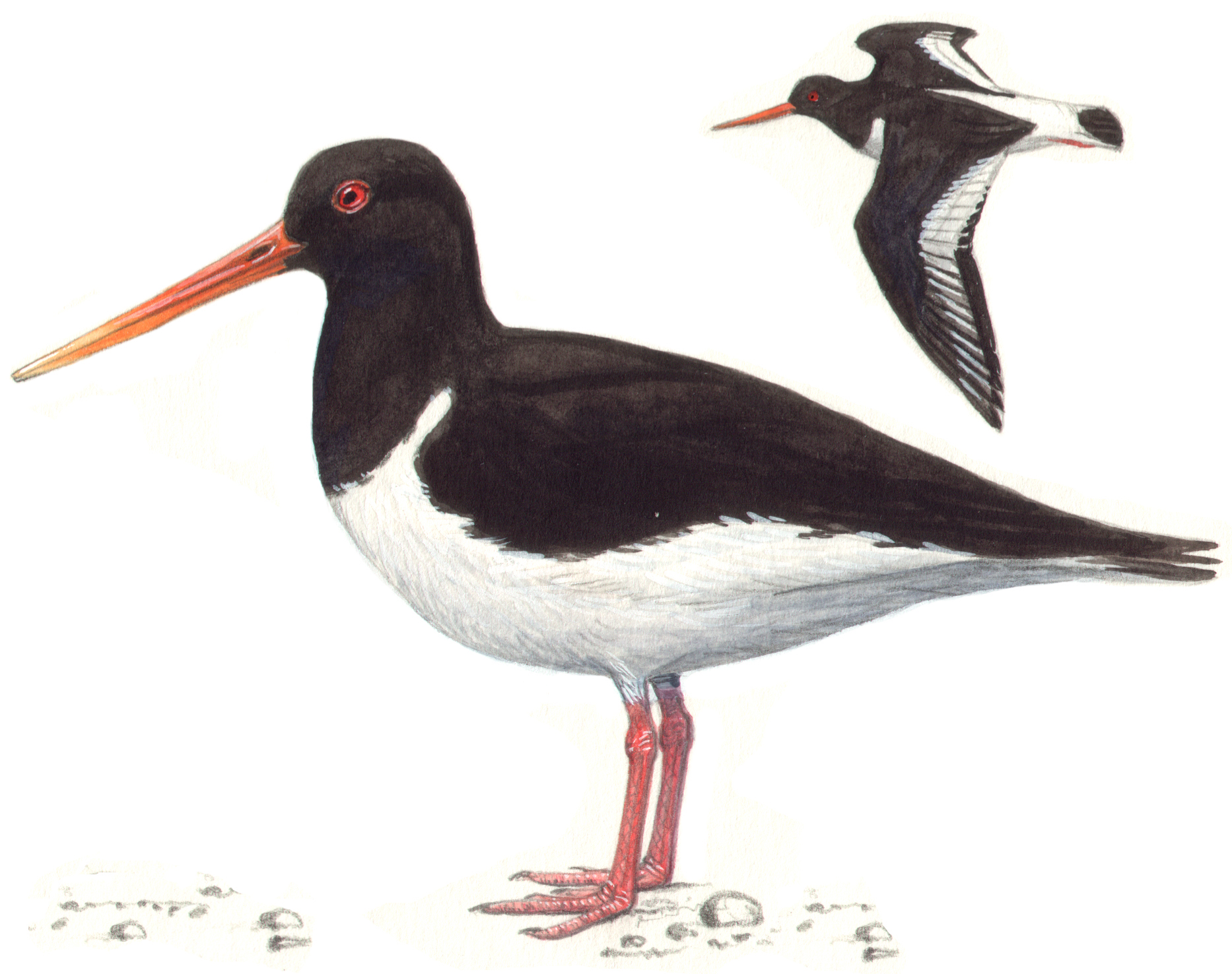 Крупный, с ворону, яркоокрашенный кулик с большим оранжевым клювом. Длина тела около 45 см, размах крыльев до 80 см. Верх туловища, голова и грудь черные, низ белый. Самцы и самки внешне никак не различаются. О пребывании птиц на водоеме свидетельствуют постоянные тревожные крики «кипИк-кипИк-кипИк…» или «квИик-квИик-квИик…», которые они издают, пролетая над рекой.