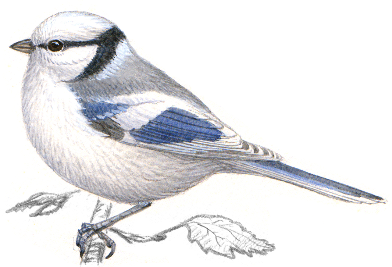 Размерами меньше большой синицы – длина тела до 15 см, размах крыльев чуть больше 20 см. Оперение большей частью белое с серыми и голубыми участками на голове, спине, крыльях и хвосте. Наиболее обычные позывки похожи на циркающие крики длиннохвостых синиц, но звонче и ярче: «цирр», «цррр», «церррер»; могут быть похожи на сигналы обыкновенных лазоревок: «цири-ци-ци-ции», «чирри-ри-ри-ри», «церрери» [5].