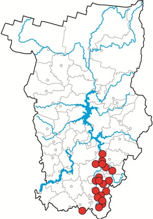 На территории Пермского края встречается почти исключительно в пределах Кунгурской островной лесостепи; за ее пределами отмечен на самом юге края в долине р. Танып (Чернушинский район) [3–6].