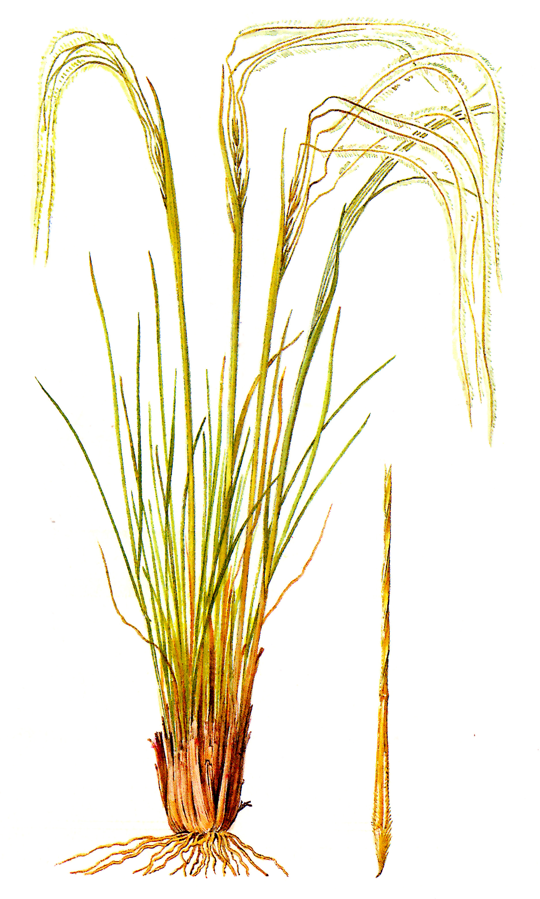 Плотнодерновинное многолетнее травянистое растение с прямыми стеблями 30–70 см высотой. Листья щетиновидные, голые, 0,5–1,5 мм в диаметре. Соцветие – узкая метелка 8–16 см длиной, заключенная во влагалище верхнего листа. Колоски одноцветковые. Нижние цветковые чешуи 15–18 мм длиной, с краевой полоской волосков, на 1,5–5 мм не доходящей до основания ости. Ость 25–35 см длиной, дважды коленчато-изогнутая, нижнее колено которой голое и скрученное, верхнее, более длинное, – усажено длинными отстоящими волосками около 5 мм длиной.