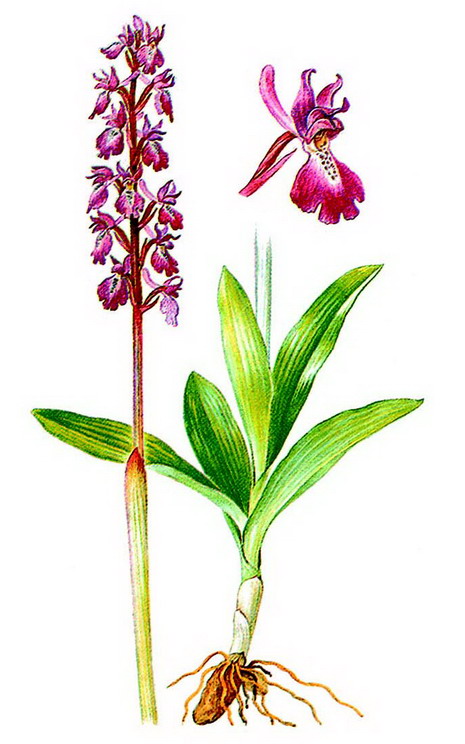 Многолетнее травянистое растение 20–45 см высотой, с подземным яйцевидным клубнем. Листья продолговато-эллиптические, притупленные. Соцветие густое, многоцветковое. Прицветники 2–3 мм длиной. Листочки околоцветника светло-розовые или розовато-фиолетовые, с более темными жилками и крапинками. Пять верхних листочков околоцветника сближены между собой, образуя своеобразный «капюшон», или «шлем». Губа до 14 мм длиной, с двумя лопастями при основании и крупной центральной двухлопастной долей с небольшим зубчиком между лопастями. Плод – коробочка [2, 3].