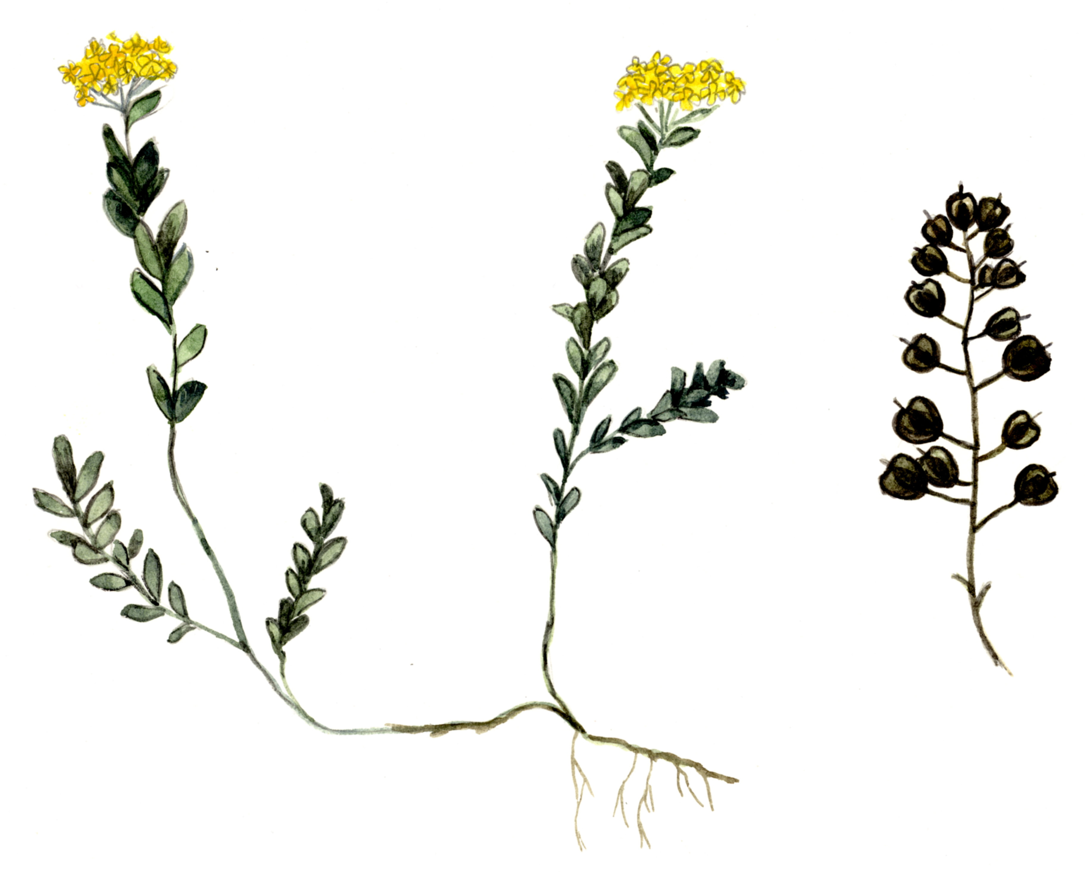 Многолетнее травянистое двудомное растение с мясистыми сочными листьями. Стебли в числе нескольких, прямостоячие, неветвистые, 10–40 см высотой. Листья очередные, густо расположенные, сидячие, продолговато-яйцевидные, заостренные, по краям или только на верхушке зубчатые, 0,7–3,5 см длиной и 3–15 мм шириной. Цветки однополые, расположенные на верхушках стеблей густыми щитками; цветоножки короче цветков. Число чашелистиков и лепестков обычно по 4, редко 5. Чашечка около 2 мм длиной с туповатыми чашелистиками. Венчик желтый, вдвое длиннее чашечки. Листовки зеленоватые, прямостоячие, 5–7 мм длиной, с коротким, отогнутым наружу носиком.