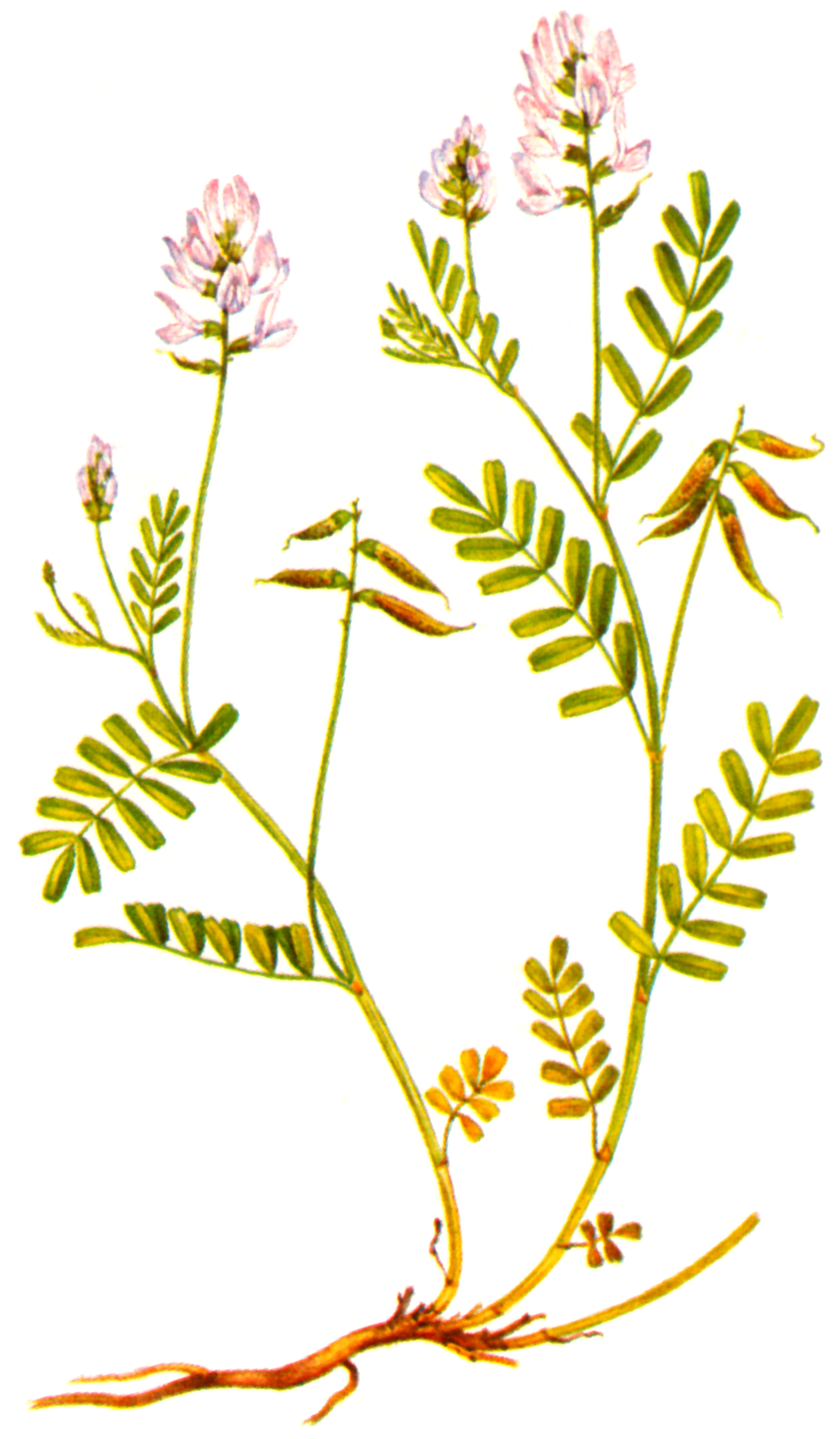 Стержнекорневой поликарпический травянистый многолетник со стеблем 15–40 см высотой. Листья с (4) 5–7 (9) парами ланцетных или продолговатых листочков 8–25 мм длиной и 5–8 мм шириной, разреженно опушенных. Прилистники нижних листьев высоко сросшиеся, буро-зеленые, верхних – свободные, яйцевидные, травянистые. Цветки собраны в овальные кисти на цветоносах, равных листьям или в 1.5–2 раза превышающих их. Чашечка колокольчатая, 5–7 мм длиной. Венчик беловатый или желтовато-белый, с ярким фиолетовым пятном на верхушке лодочки. Флаг 10–15 мм длиной, с широко овальной пластинкой, выемчатой на верхушке. Бобы поникающие, эллиптические, сплюснутые с боков, на обоих концах заостренные, 15–30 мм длиной и 4–7 мм шириной, голые, одногнездные, без перегородок [2].